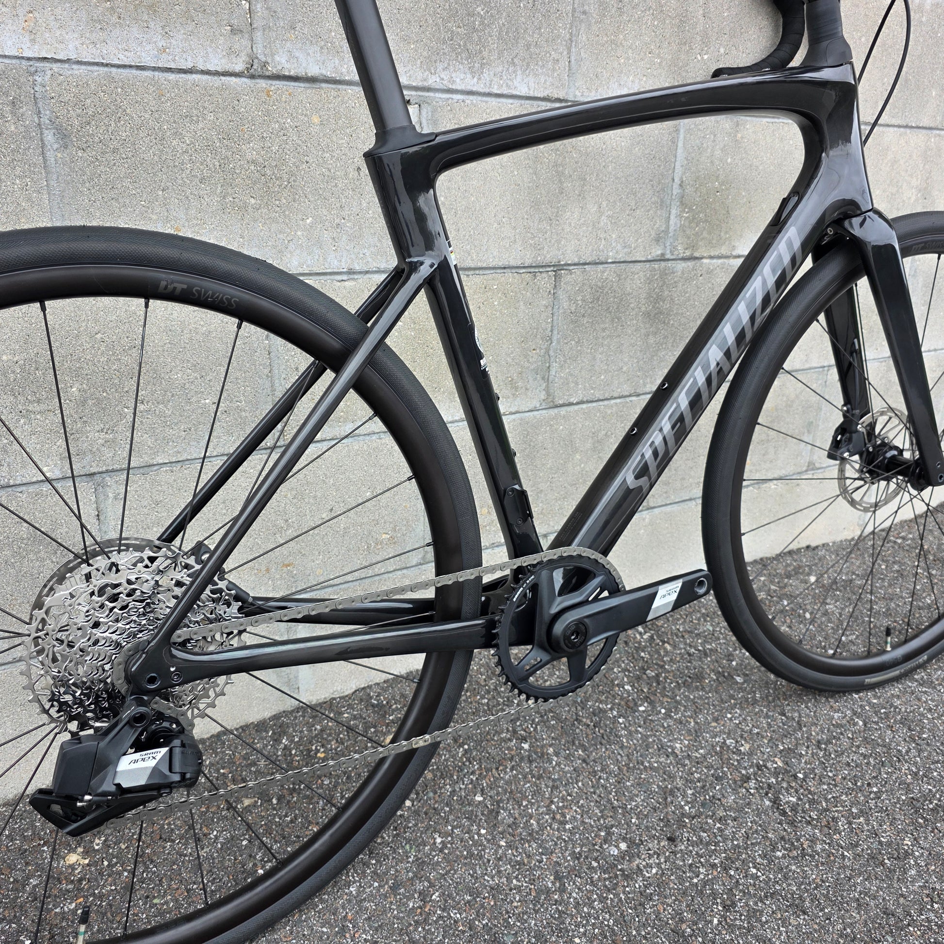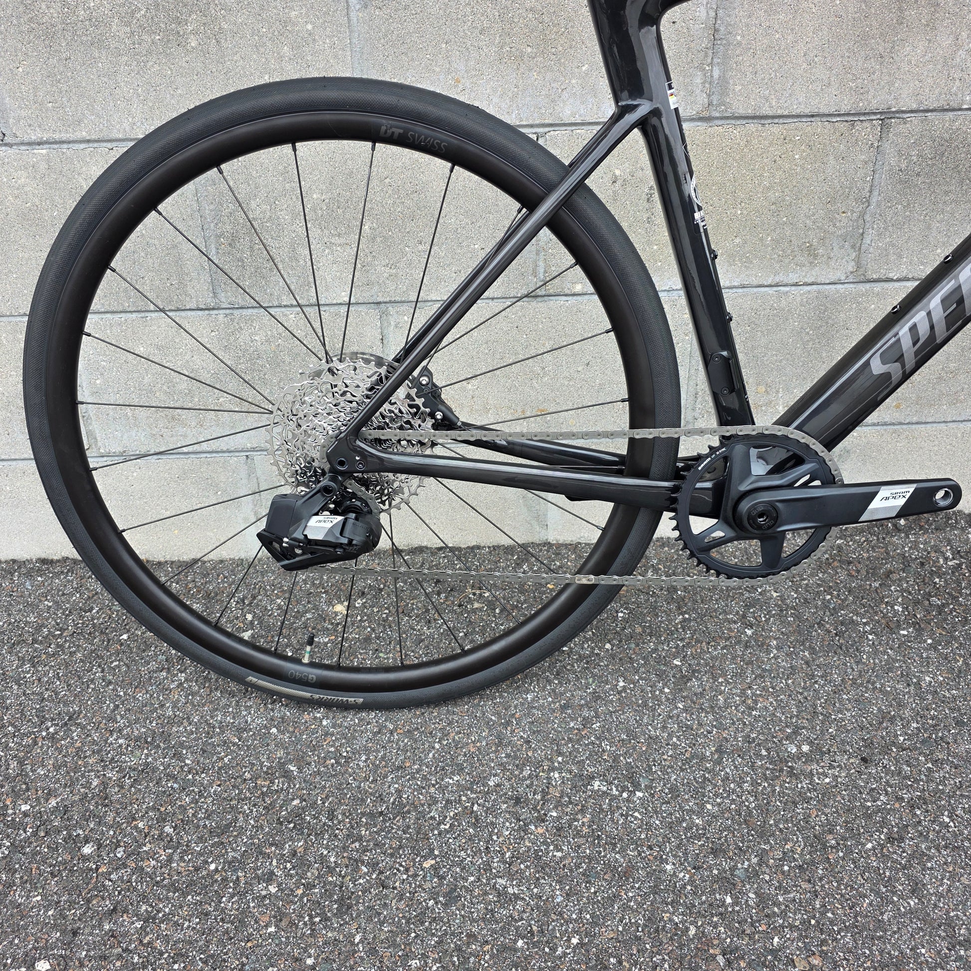SRAM Apex AXS 1x wireless shifting, DT Swiss wheelset and the abilty to run wide tires.
