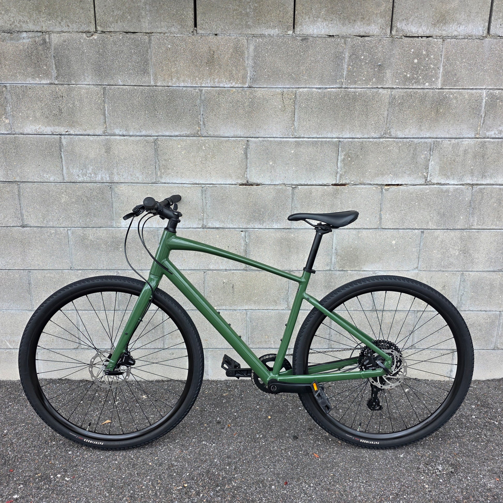 Lightly used, excellent condition minus a couple tiny scratches. Fully tuned up and ready to ride. Features a 1x9 Microshift drivetrain that is reliable and and accurate. 700c wheels roll quickly and hydraulic disc brakes stop well. Super nice Cypress Green color.