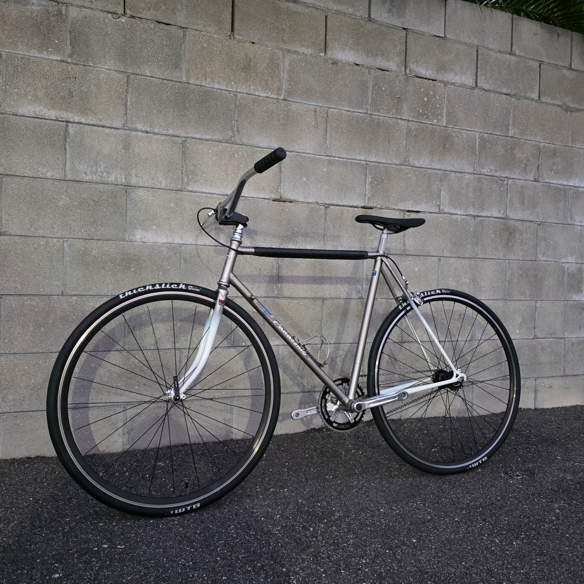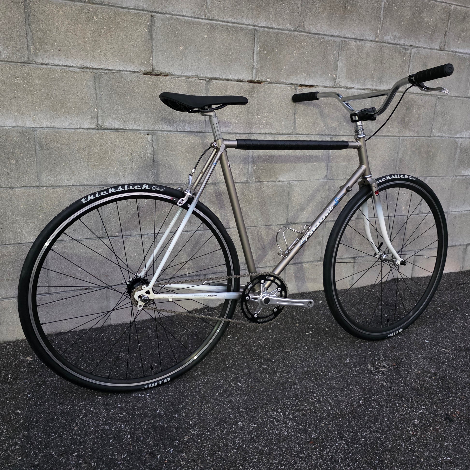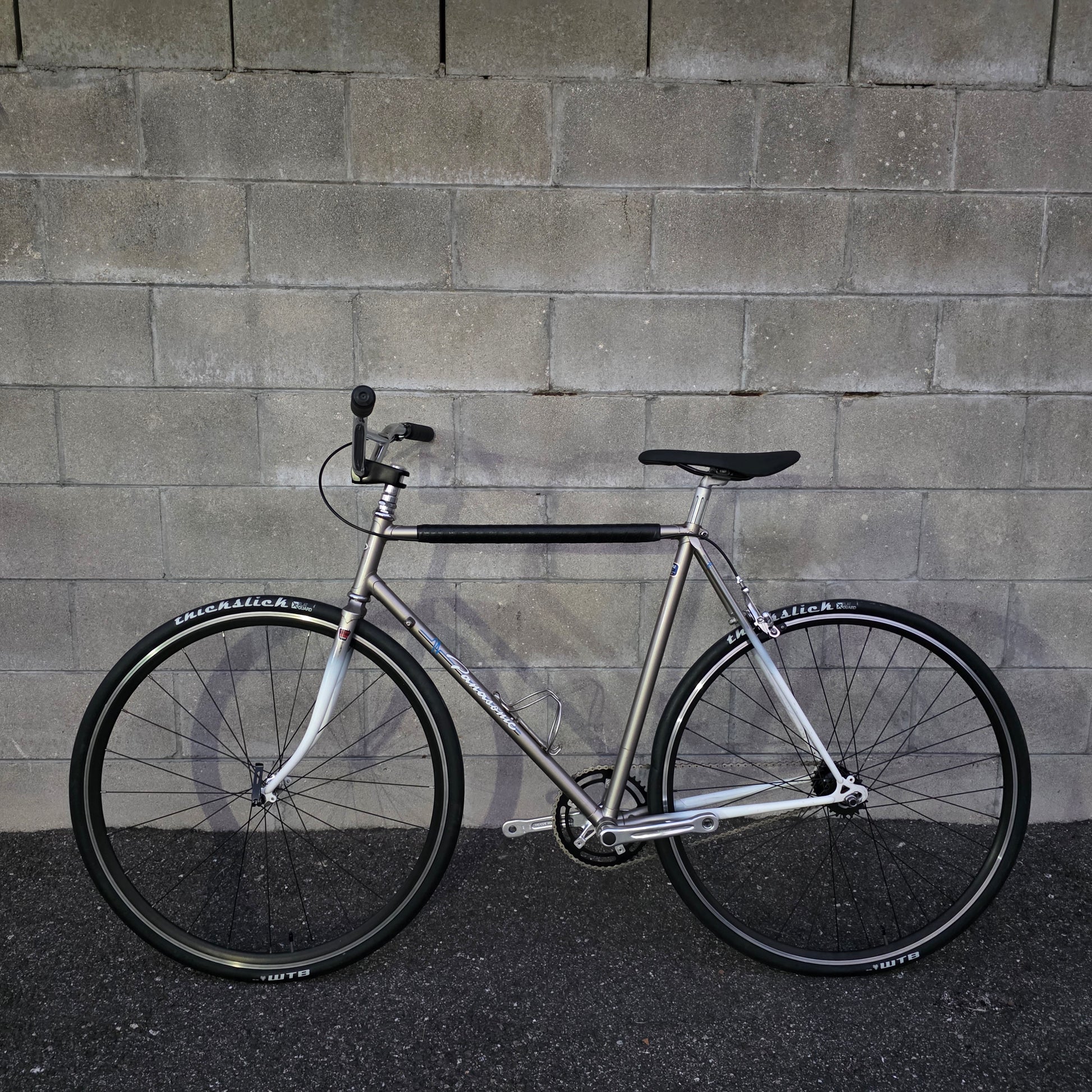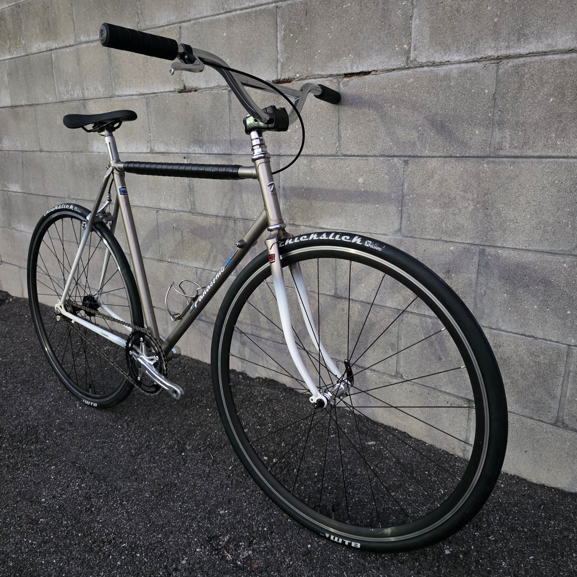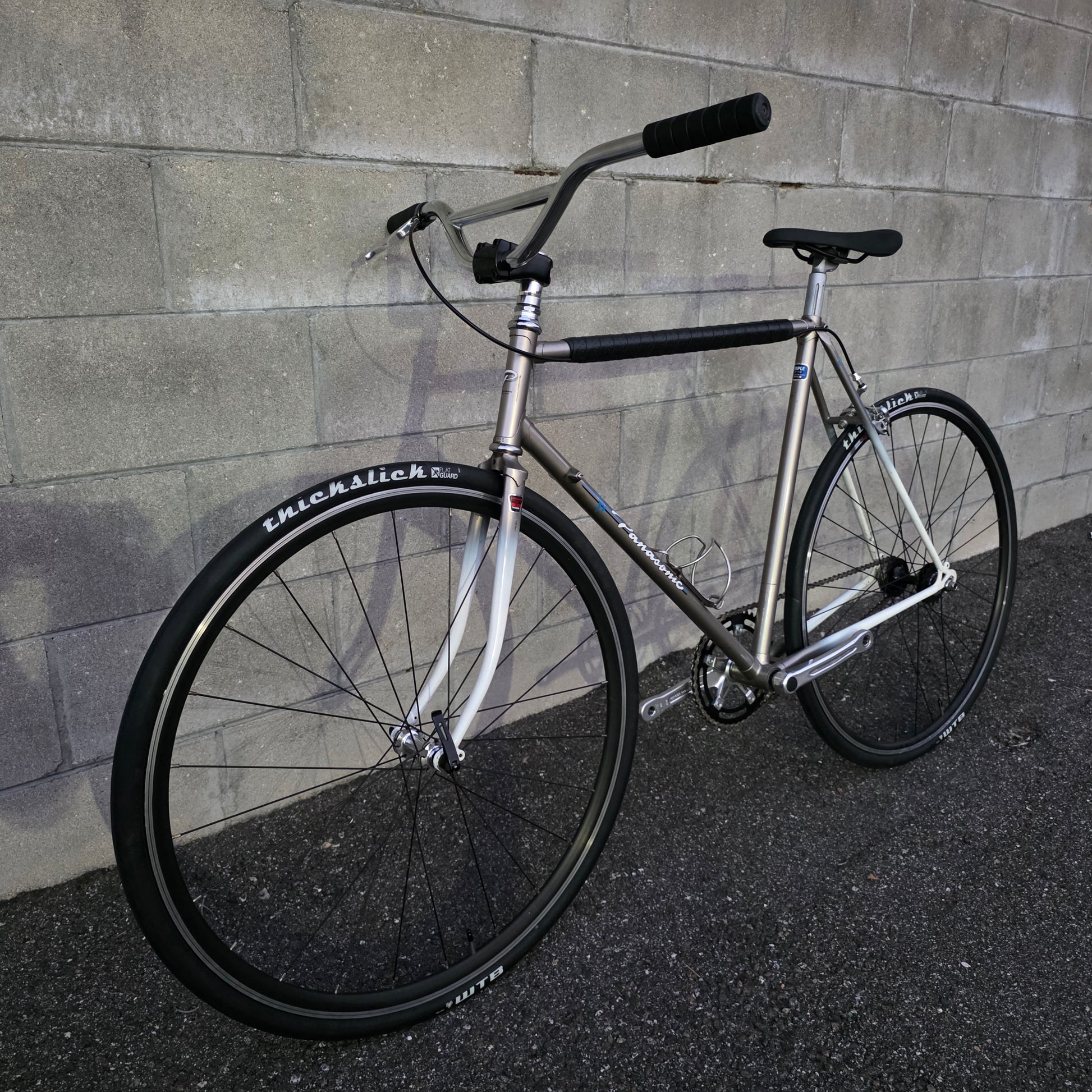 Panasonic Vintage Road Bike converted to SingleSpeed or Fixed Gear. Has flip/flop style wheel with freewheel on one side fixed on the other.